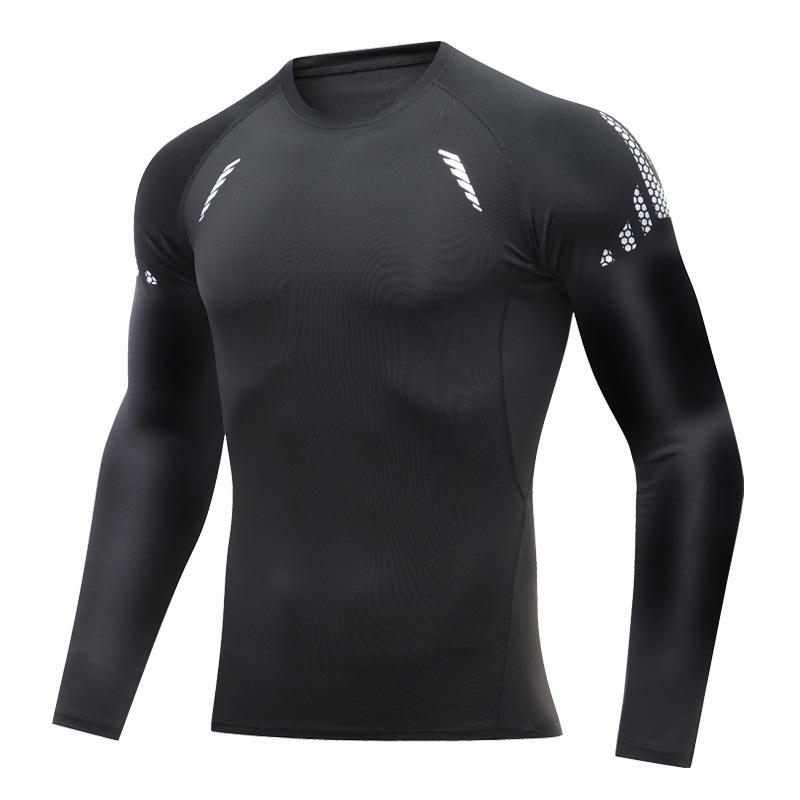 Nuova Maglietta Sportiva da Uomo Personalizzabile con Logo, a Maniche Lunghe, in Poliestere ad Asciugatura Rapida, Compressione, Base Layer per Palestra