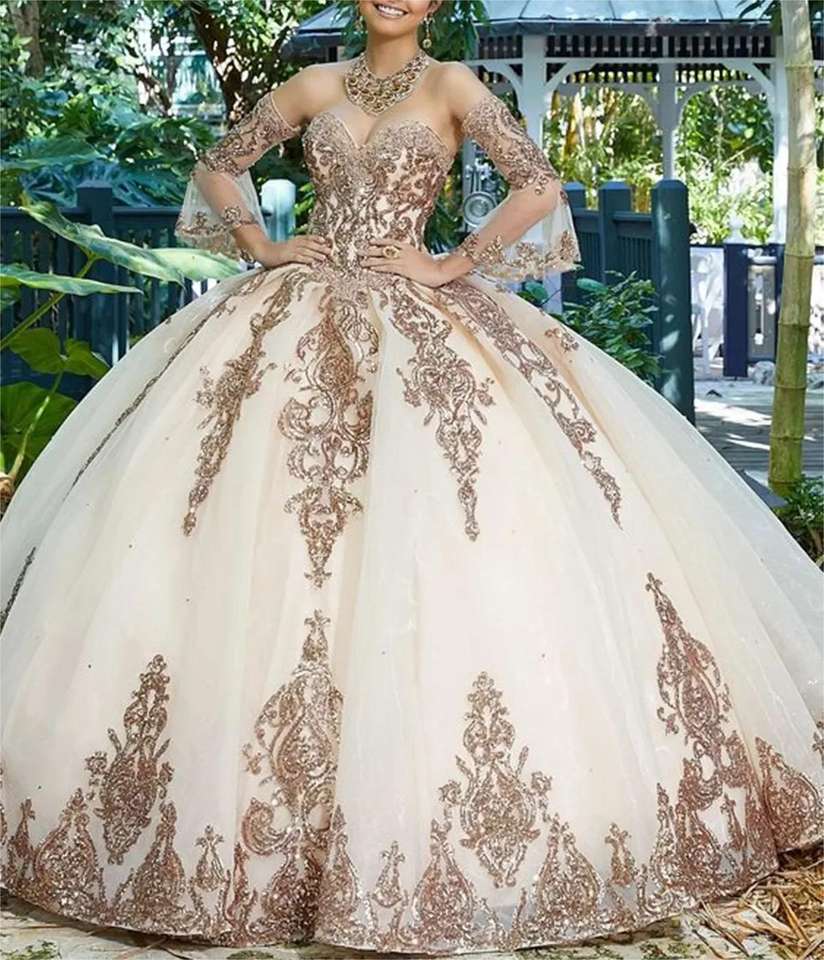 Nuovo Abito da Quinceañera su Misura, Stile Champagne, Vestito da Ballo con Scollo a Cuore in Tulle, Abito Vintage per Festa Serale, Vestito per 15 o 16 Anni
