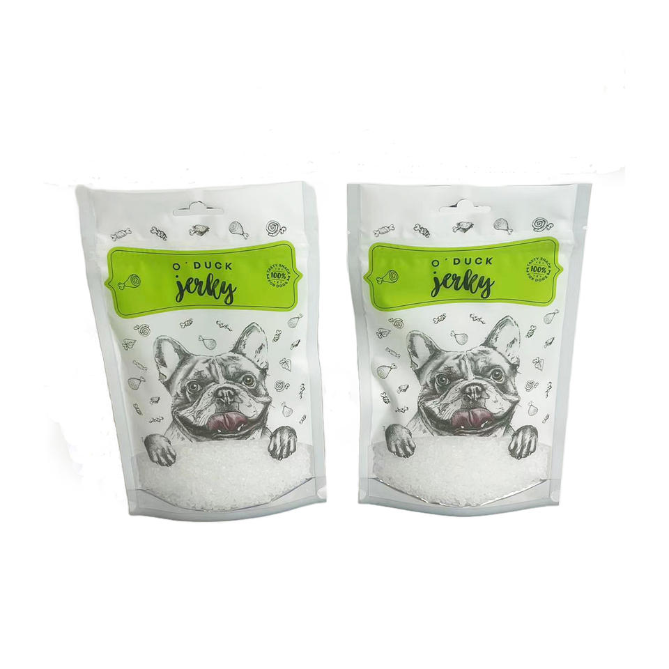 Nuovi sacchetti di alluminio autosostanti stampati personalizzati per cibo per cani con chiusura a cerniera, che consentono di vedere il prodotto interno