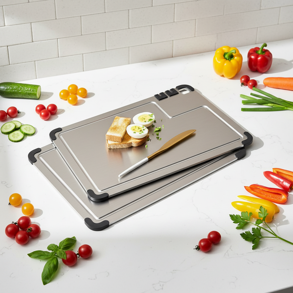 Nuovo Tagliere Personalizzato in Titanio Puro con Affilatore, Antibatterico, in Acciaio Inossidabile 304 316, Tagliere a Doppia Faccia