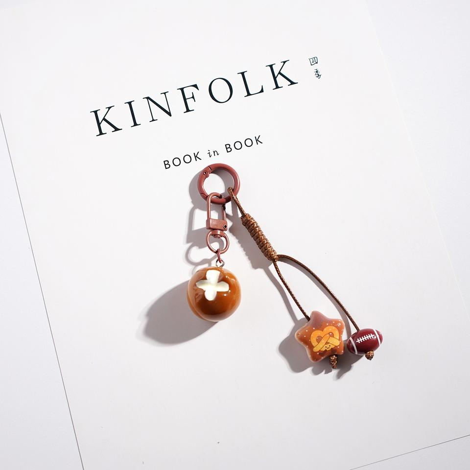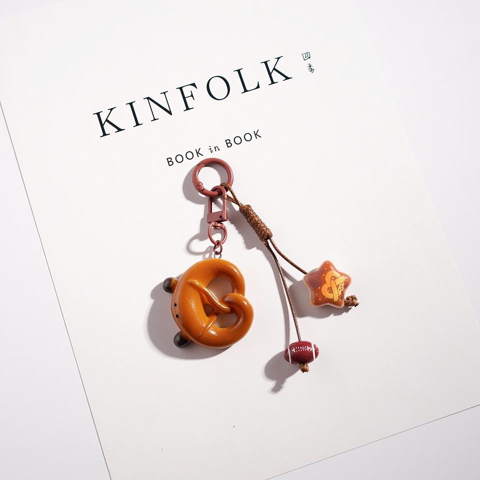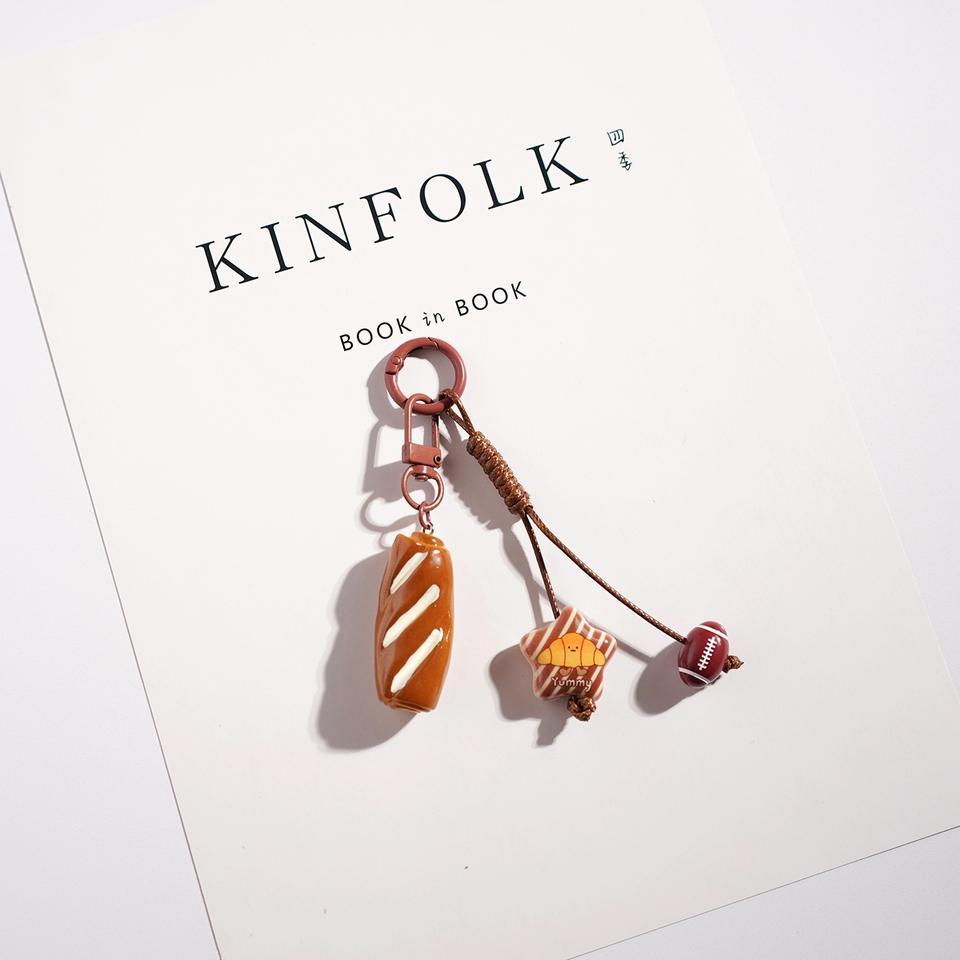 Nuovo Portachiavi in Resina a Forma di Pane Cartoon, Ciondolo Decorativo per Borse, Piccolo Regalo per Auto e Zaini, Little Red Book