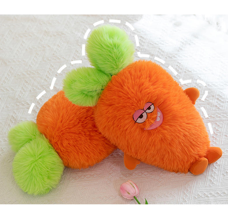 New Cute Furry Carrot Plush Toy Emojis Monster Long Fat Carrot Stuffed Doll Cute Face Vegetable Red Carrot Throw Pillow Cushion