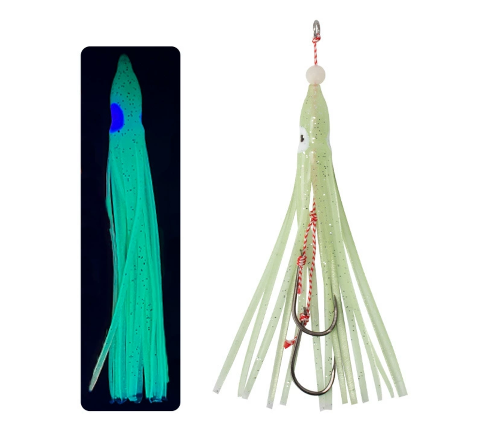 Nuovo Design artificiale luminoso polpo gonne di calamaro gancio per pesca morbida esche a doppia assistenza ganci
