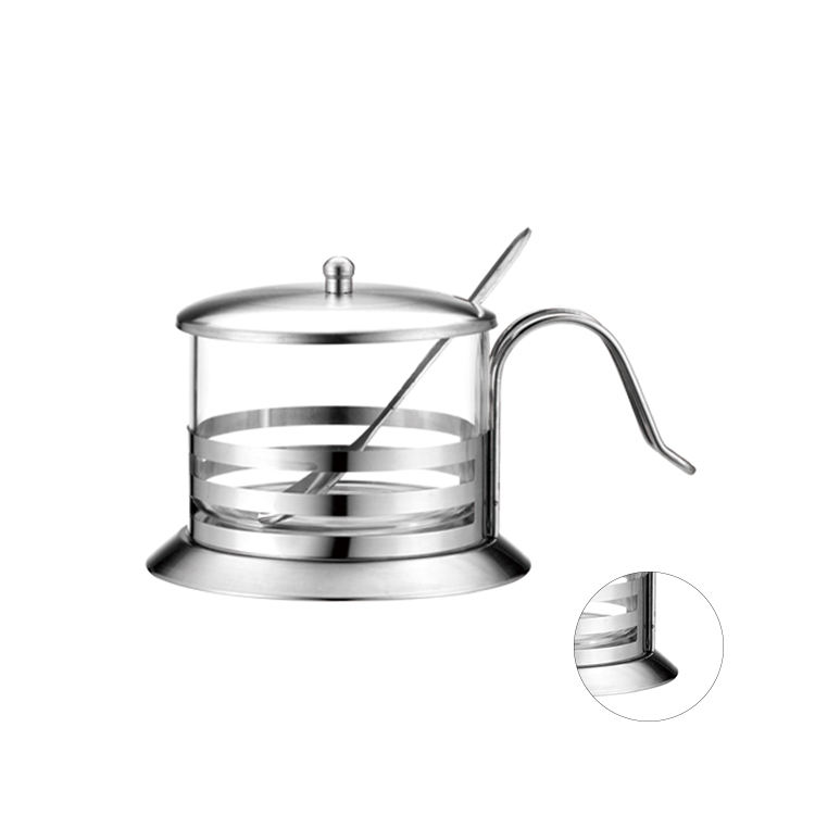 High Quality Borosilicate Glass Sugar Pot With Stainless Steel Spoon