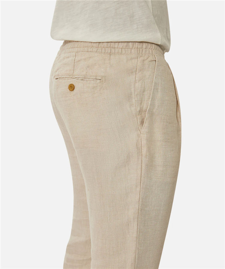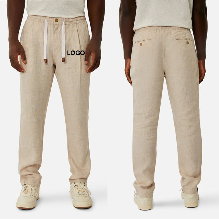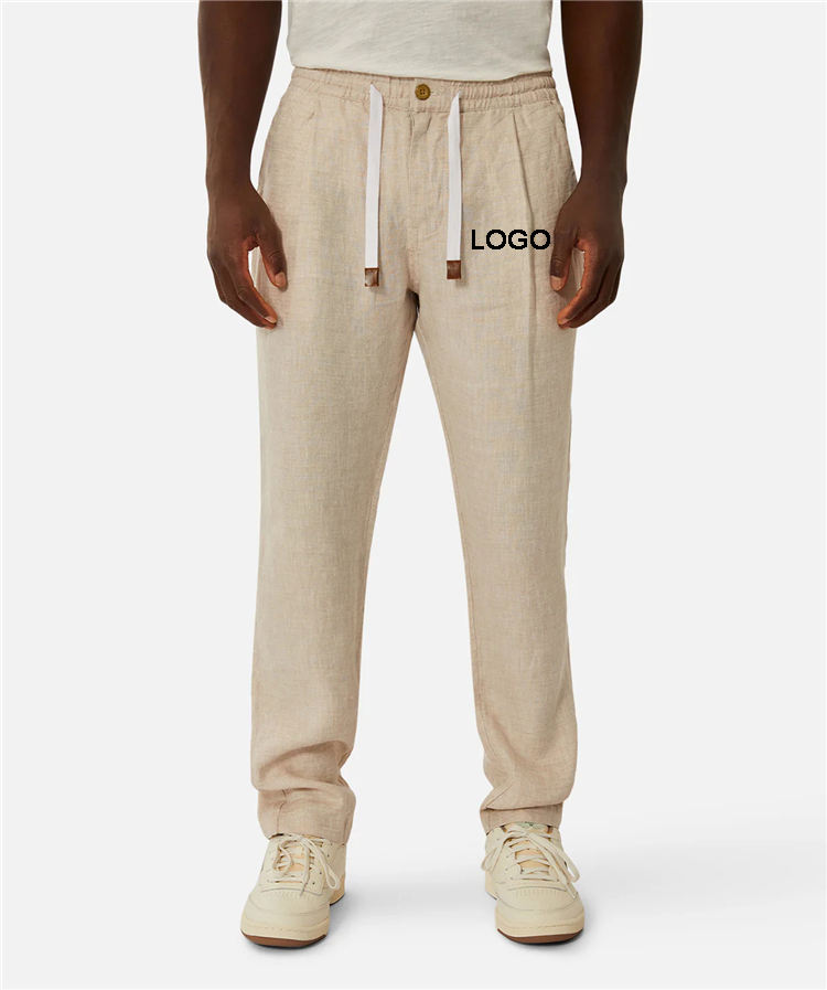 Nuovi Pantaloni in Lino 100% Beige con Tasche, Vestibilità Comoda per Uomo