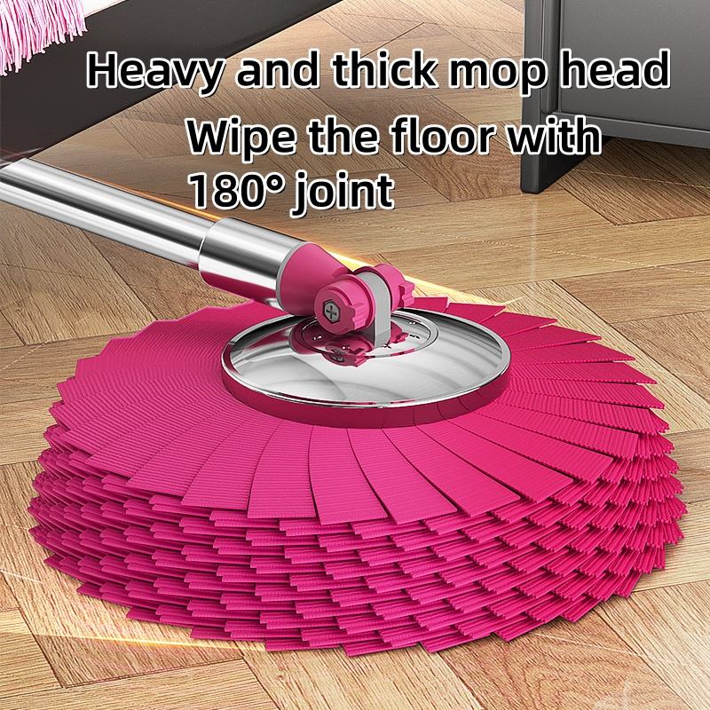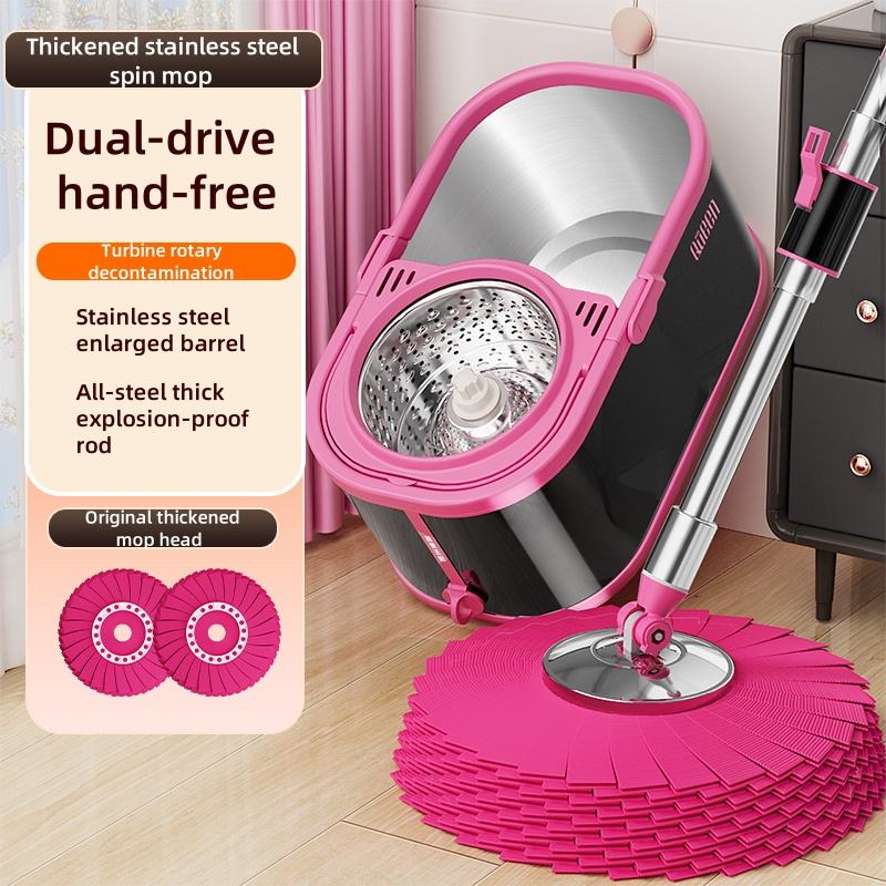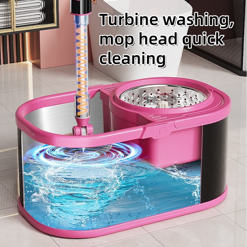 Nuovo Design Set Mop Rotante Magico 360° con Secchio in Acciaio Inox Nero e Rosa Salvaspazio per Casa