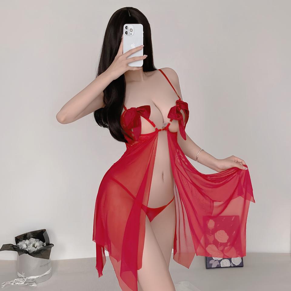 Nuovo Design con fiocco filato a rete donna trasparente Sexy che mostra capezzoli dolci ragazze tentazione Lingerie