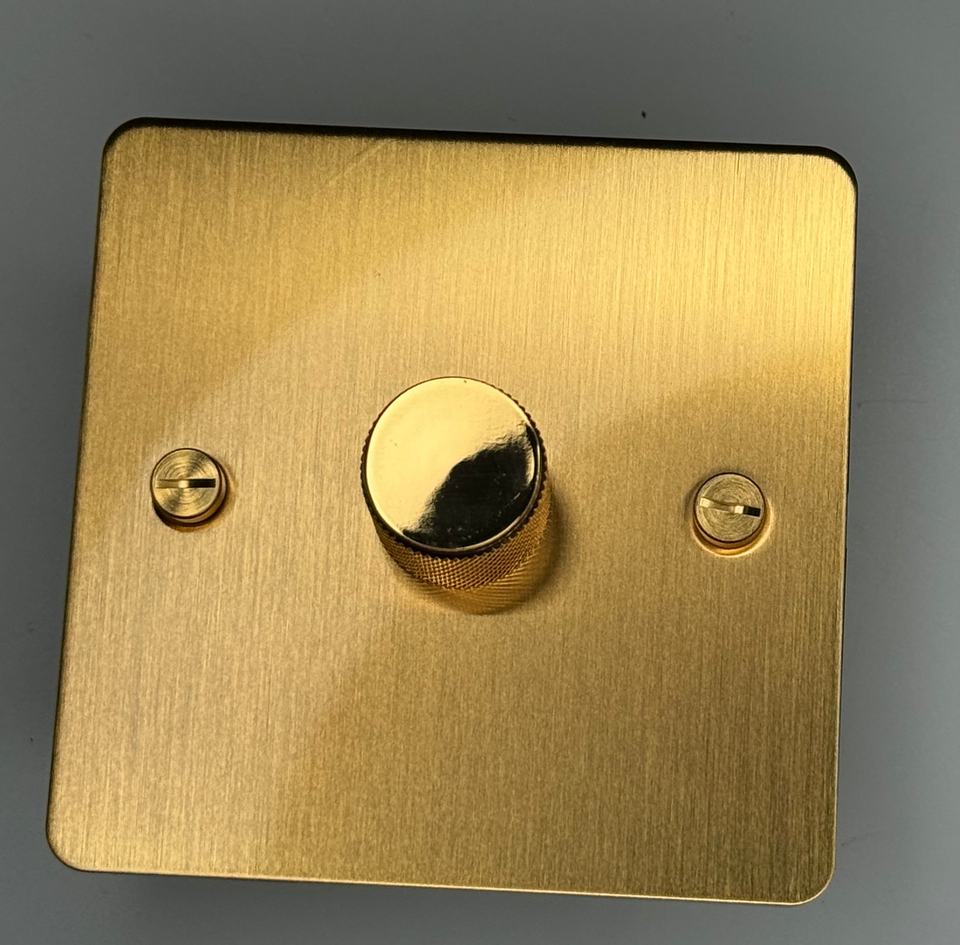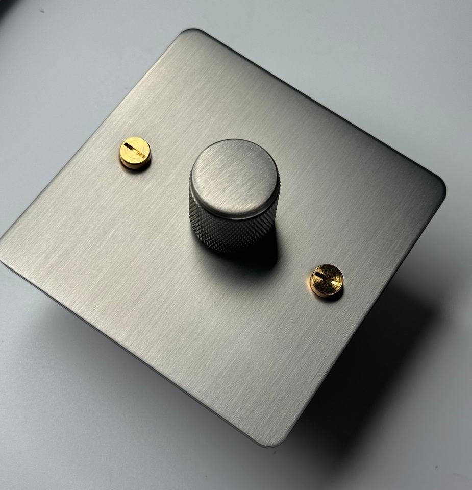 Niva Dimmer doppio, manopole in ottone, pannello inox, 100-500W, 100-240V AC, 10A-16A, CE UKCA, 86*86mm, MOQ 100 pz