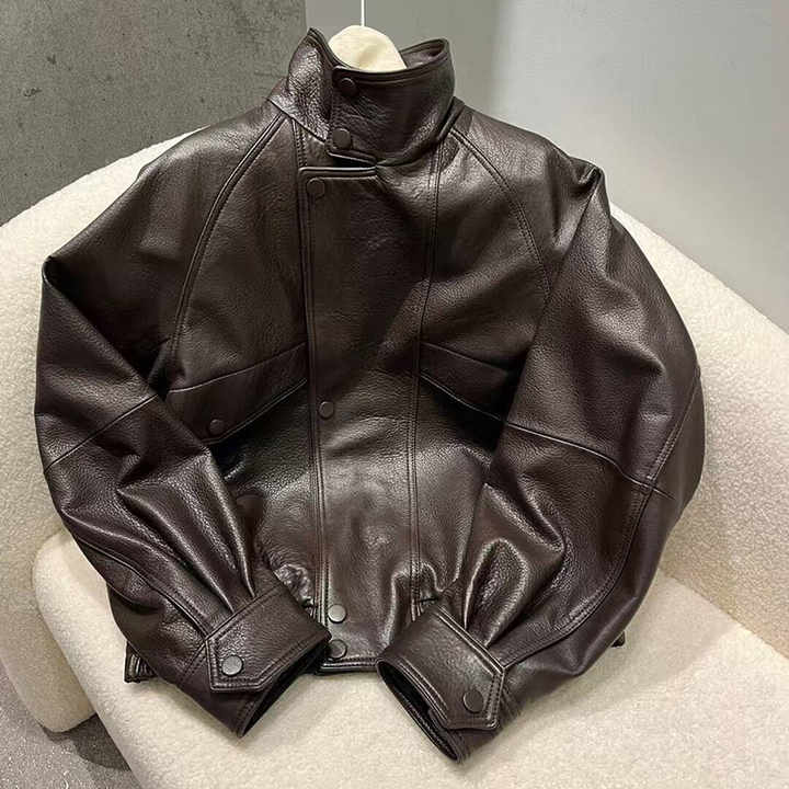 Giacca da Donna Oversize in Vera Pelle Stile Bubble di Nuovo Design Vintage
