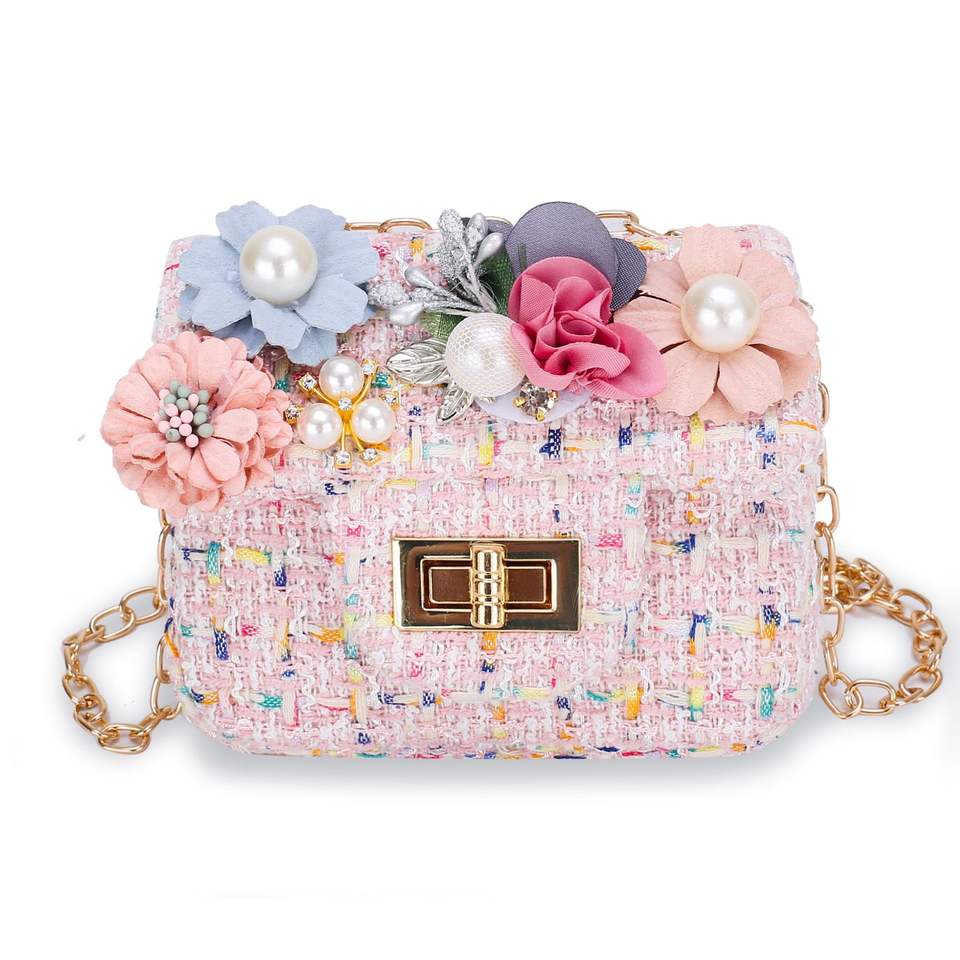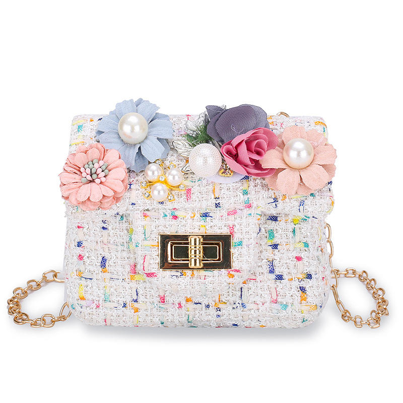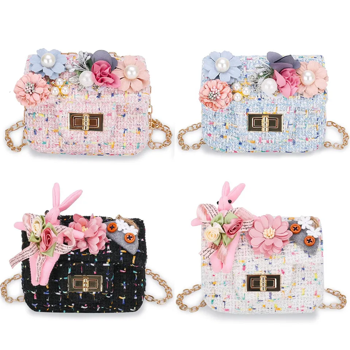 Nuove Borsette per Bambine con Design Floreale, Piccole Borse a Tracolla in Tweed, Mini Pochette per Bambine