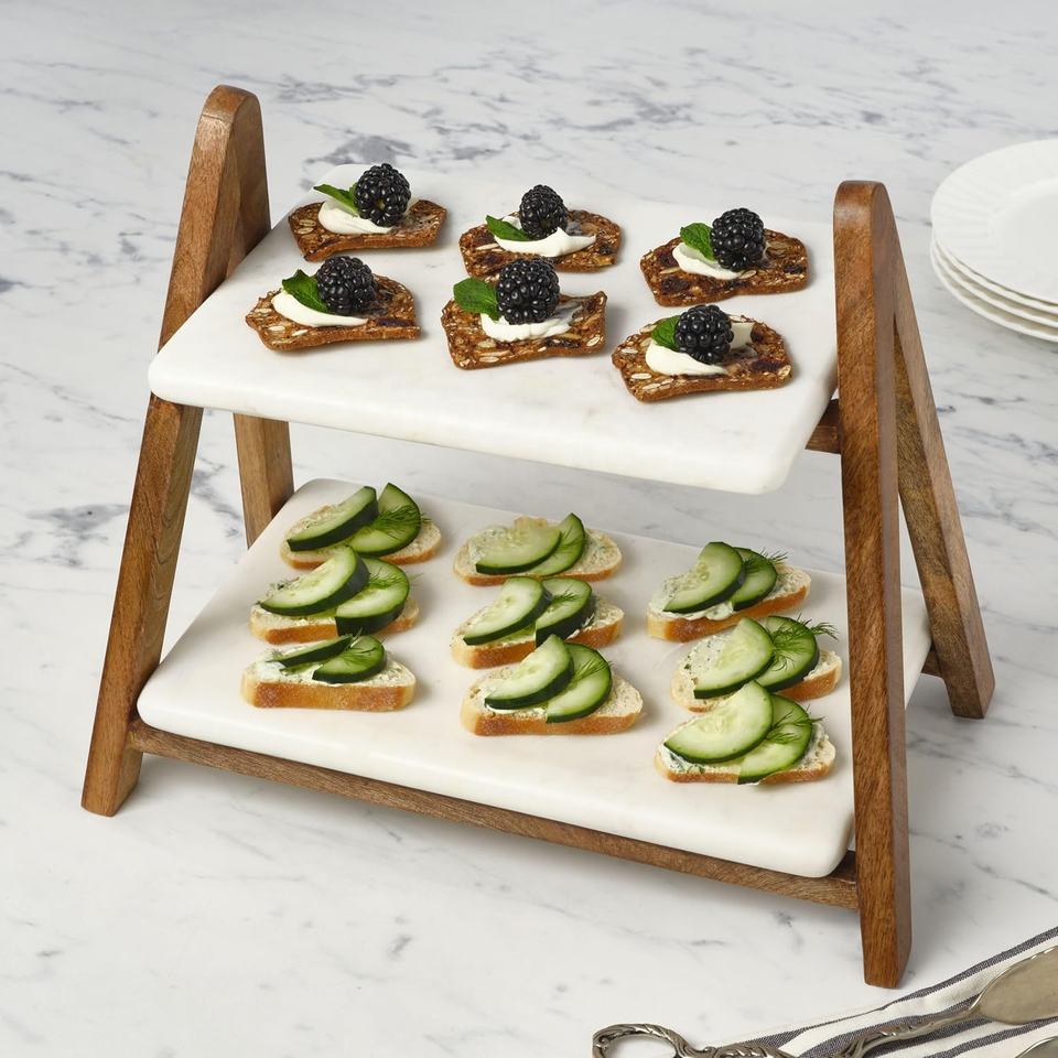 Nuovo Design eco-friendly 2 livelli in marmo legno di Acacia di lusso rettangolo per Dessert per stuzzichini per la festa di nozze