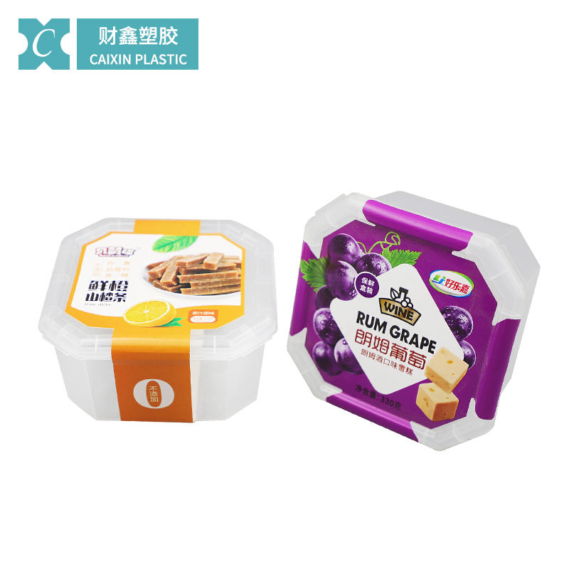 Contenitore per gelato in plastica CX035 950ml a forma di otto angoli con coperchio
