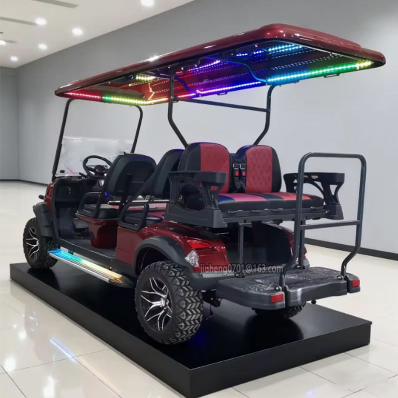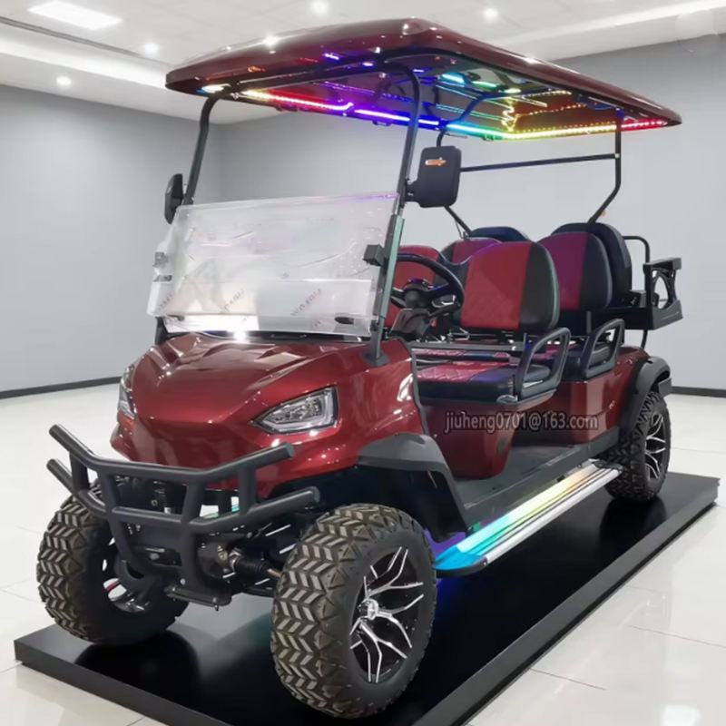 Nuovo Design Golf Cart Elettrico da Caccia Fuoristrada Nero con Pneumatici da 14 Pollici, 6 Posti, Batteria al Litio 72V, Mini Auto Elettrica all'Ingrosso
