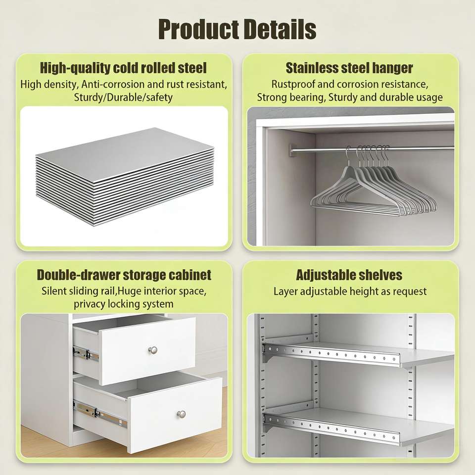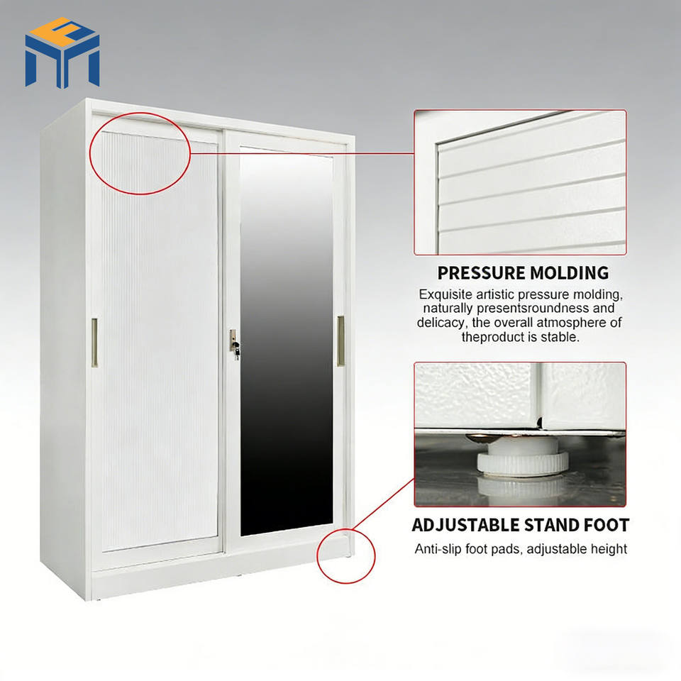 Nuovo Design Armadio Scorrevole in Acciaio Goffrato con Specchio Intero, Armadio Metallico con Serratura per Camera da Letto