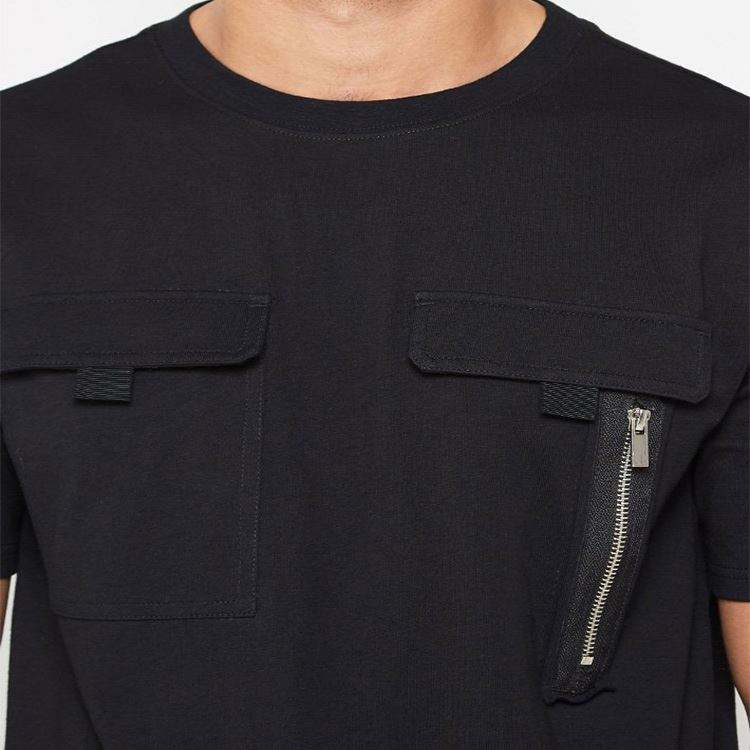 Nuovo Design moda 100% cotone nero cargo con cerniera girocollo t shirt da uomo con tasca t-shirt