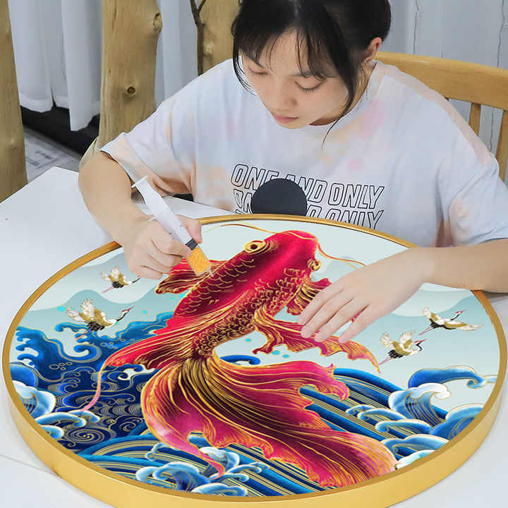 Nuovo Design pesce fai da te pittura diamante 5d pittura a olio su tela con cornice rotonda