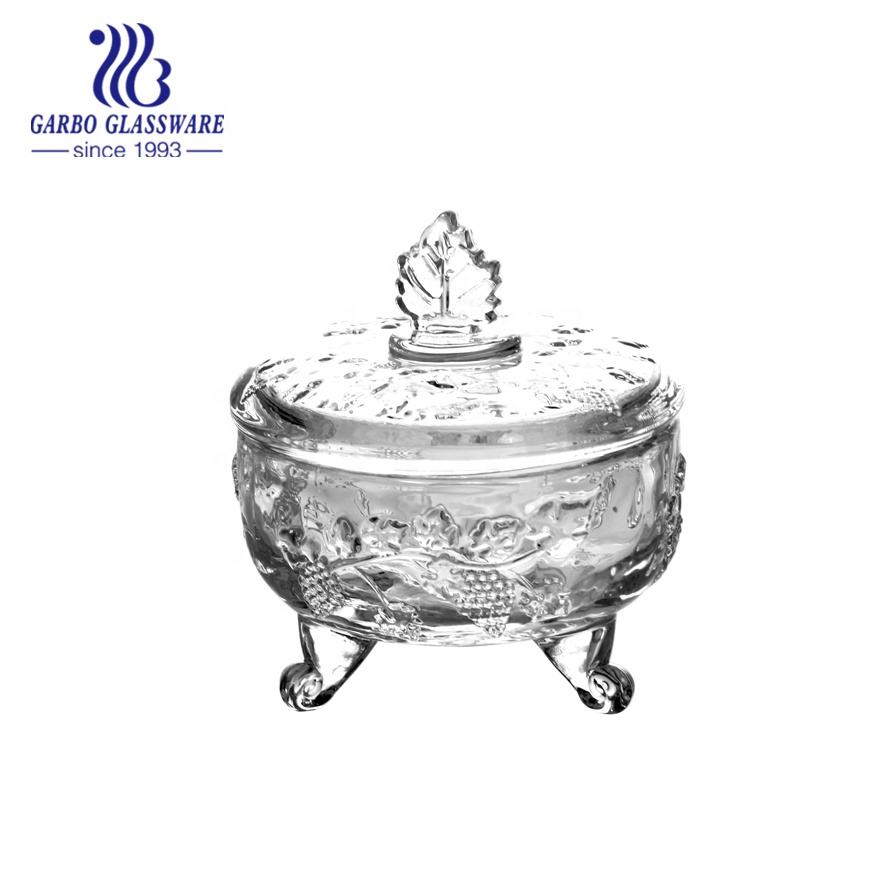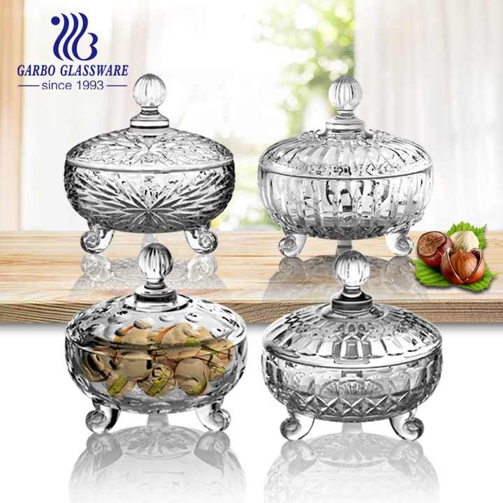 New Design Glass Sugar Bowl with Lid and Foot Nut Candy Jar for Household Use for Tableware