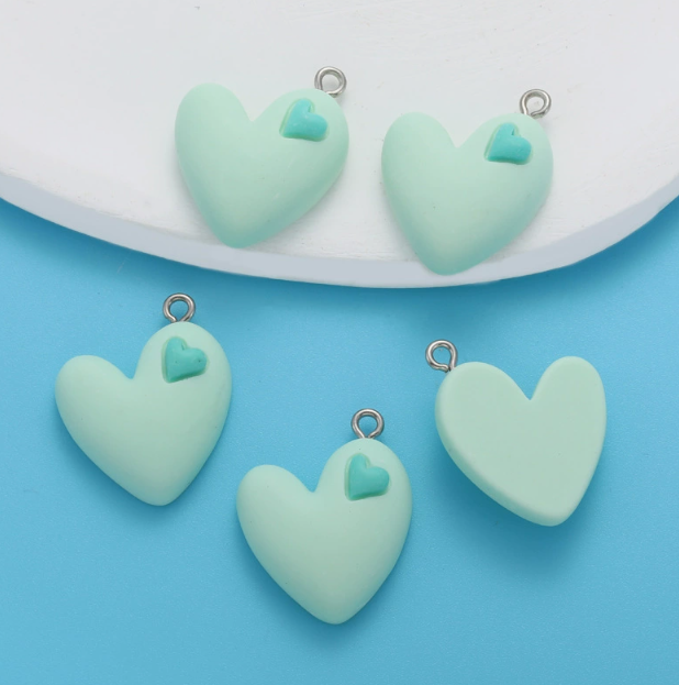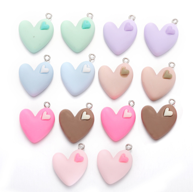 Nuovo Design cuore in resina Flatback cabochon Charms con anello foro per fai da te gioielli Deco parti artigianali