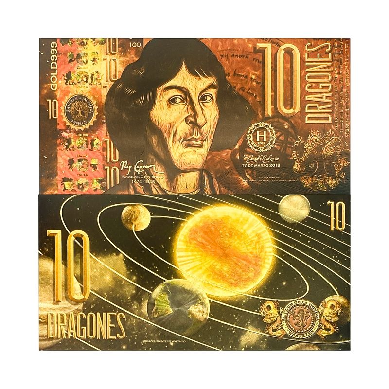 Nuovo Design di Alta Qualità, Carta da Collezione Copernico, 10 Biglietti in Plastica con Foglia d'Oro Elettroplaccata