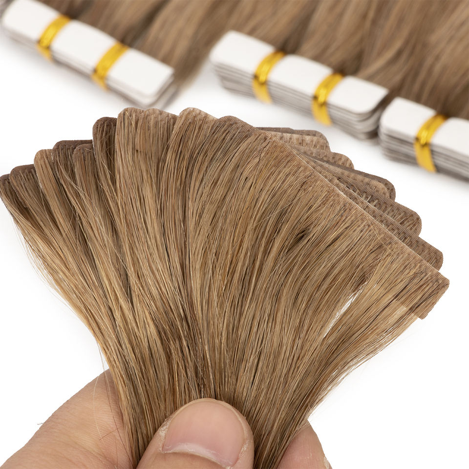 Nuovo Design Extension per Capelli Remy di Alta Qualità con Nastro Adesivo Invisibile Senza Cuciture Grezze All'Ingrosso Castano Chiaro