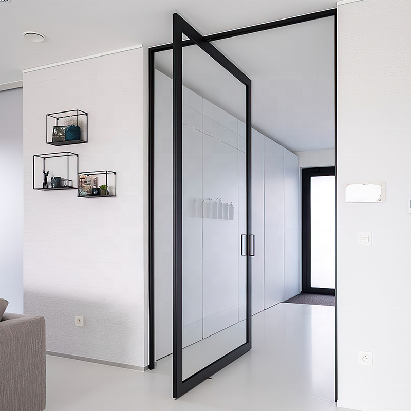 Nuovo Design Porta Pivotante Moderna in Alluminio per Interni, Rotazione a 360 Gradi, Porta Girevole in Vetro per Corridoi e Grandi Ingressi