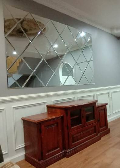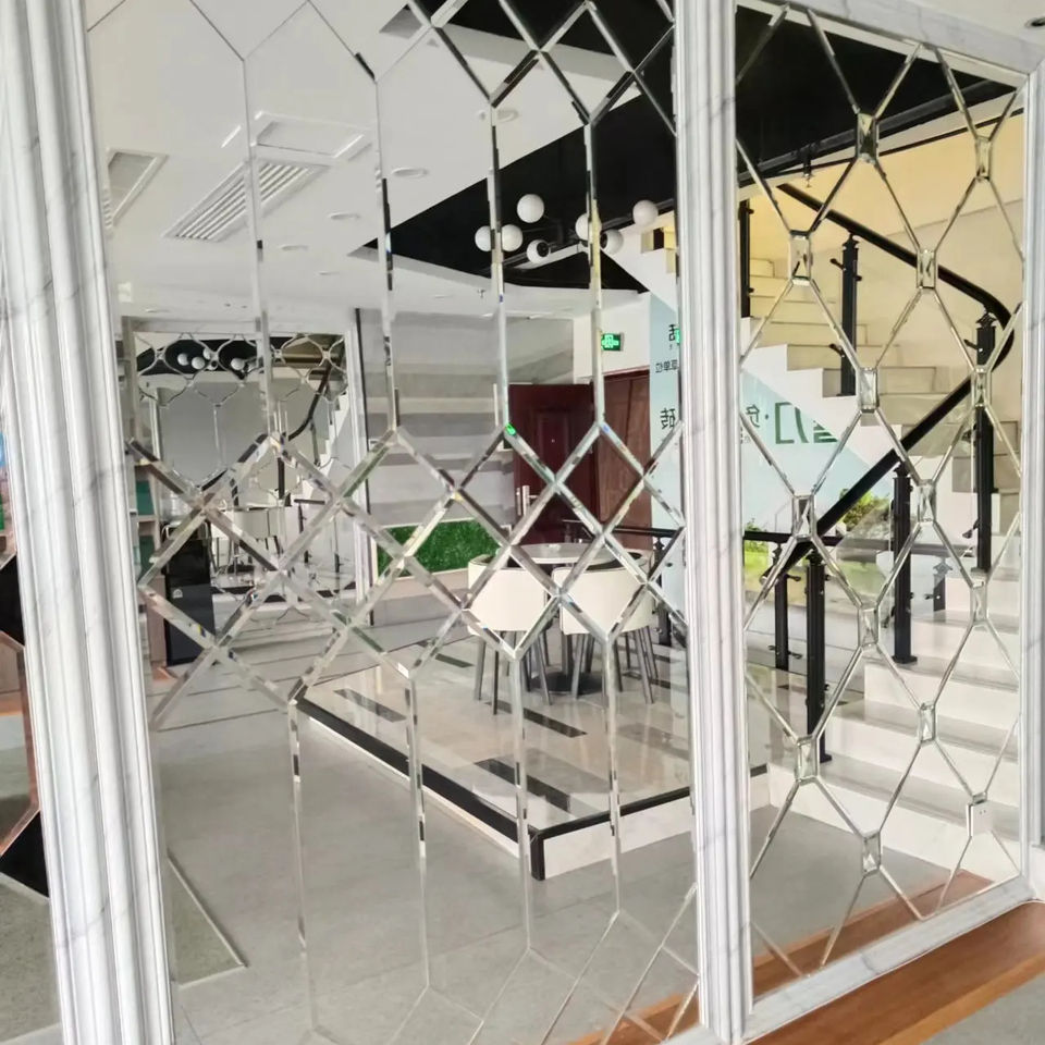 Nuovo Design Specchio Romboidale Smussato per Decorazione Parete TV in Cucina