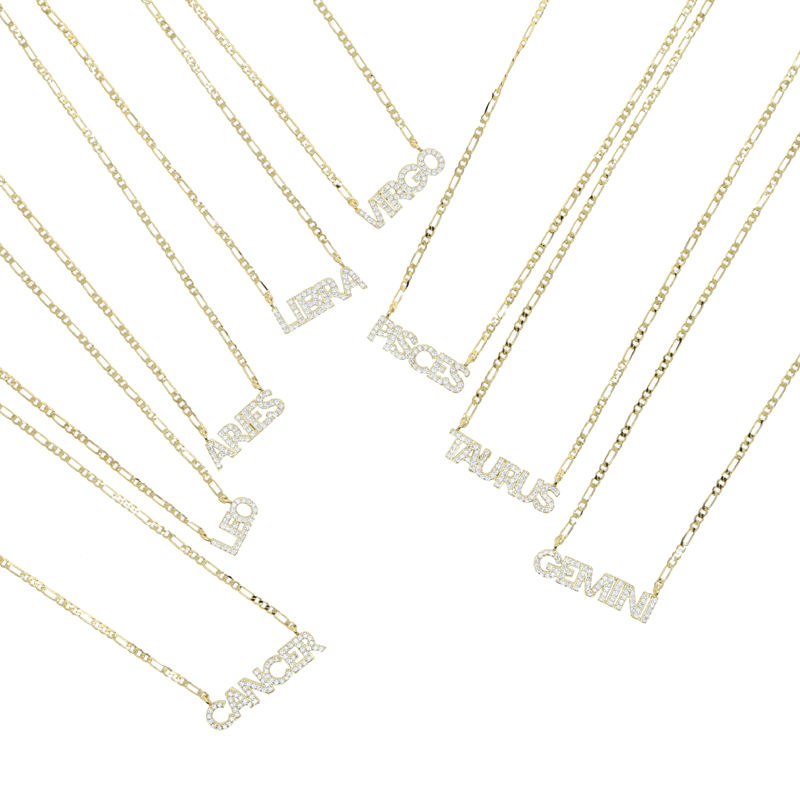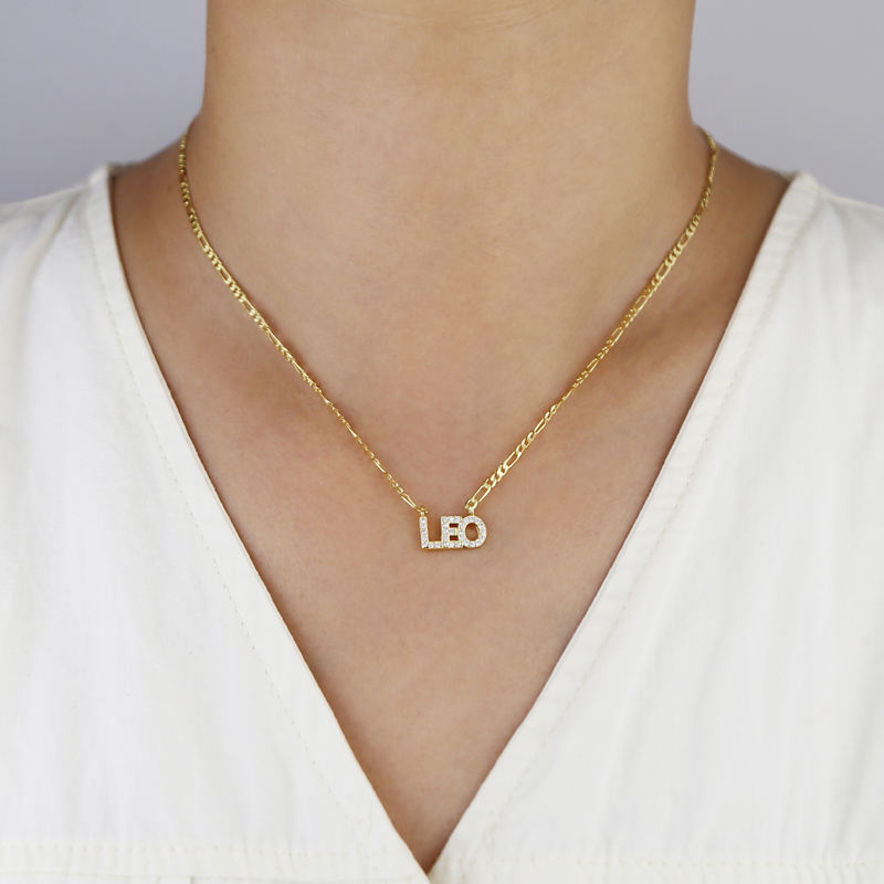Nuovo Design LEO placcato oro gioielli da donna con catena cava sottile dodici segni piena Bling CZ ciondolo collana