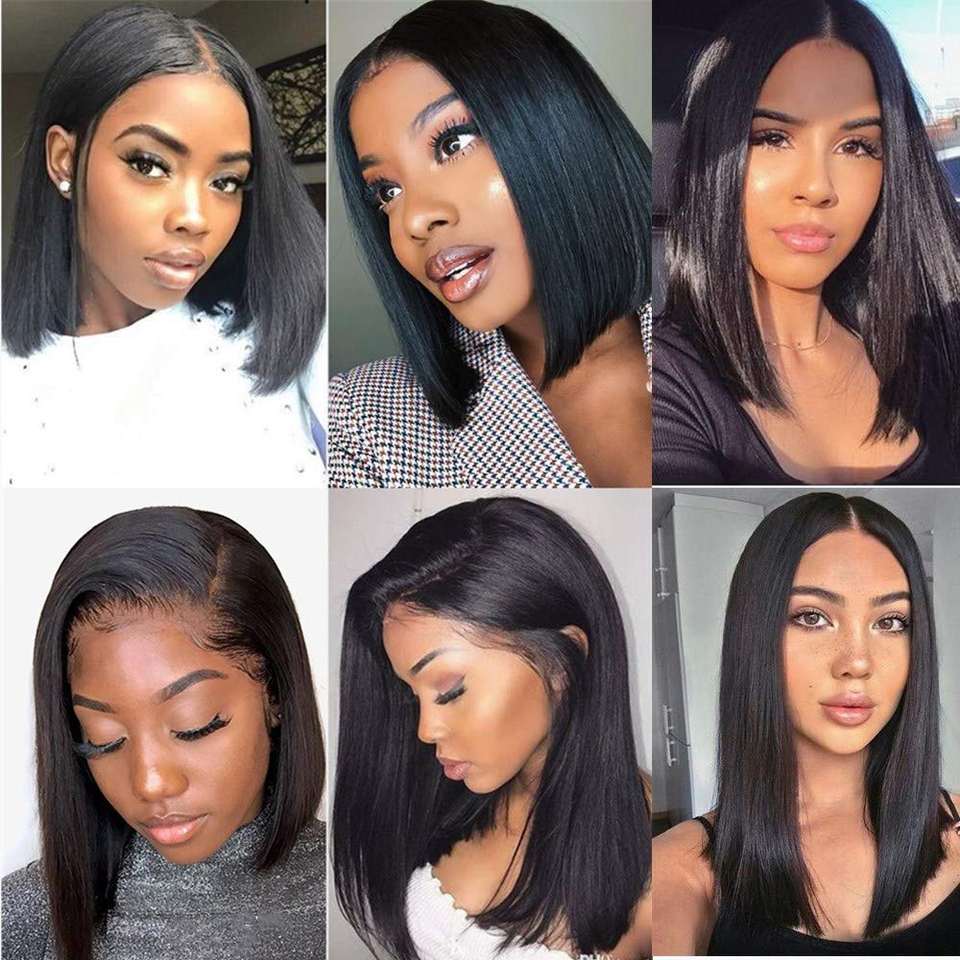 Nuovo Design Parrucca Bob Corta in Capelli Umani Peruviani, Liscia Setosa, Doppia Trama, con Frontale in Pizzo