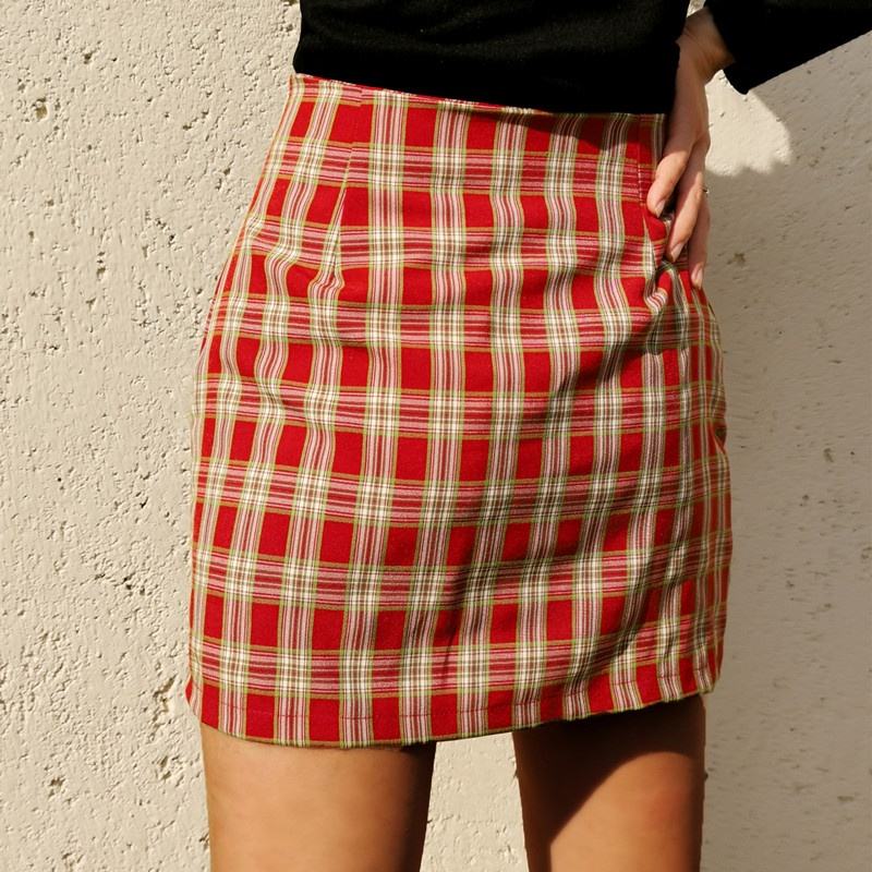 Nuovo Design ultima scuola calda giovani gonne moda vita alta dritta molto corta Mini tipo di gonna a quadri