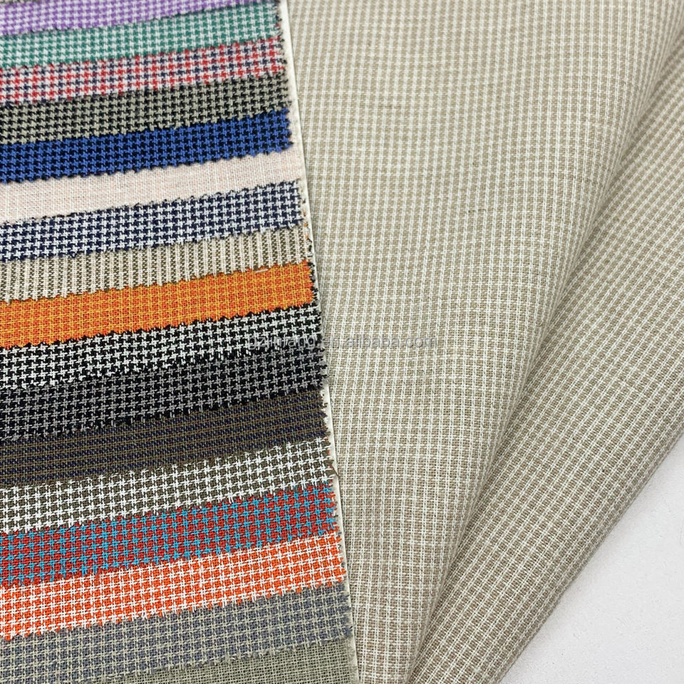 Nuovo Tessuto Leggero in Cotone e Lino con Texture Intrecciata, Tinto in Filo a Pied-de-Poule per Camicie, Abiti, Pantaloni e Tende di Lusso