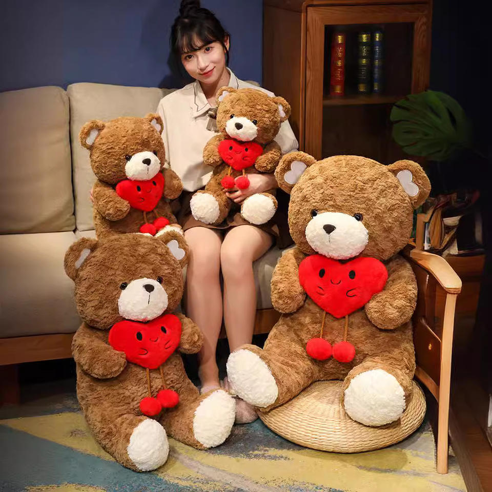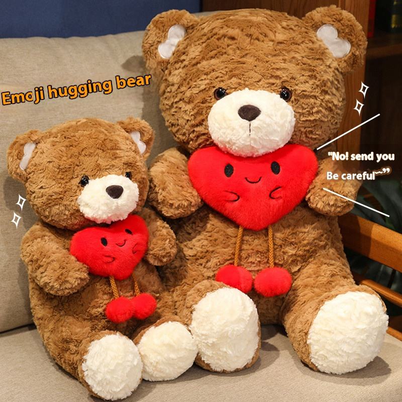 New Design Love Hug Bear Doll Red Heart Teddy Bear Stuffed Animal Toy Cartoon Sofa Throw Pillow Toys for Mother's Day Gift