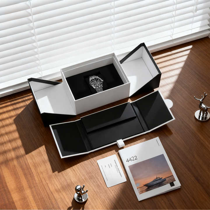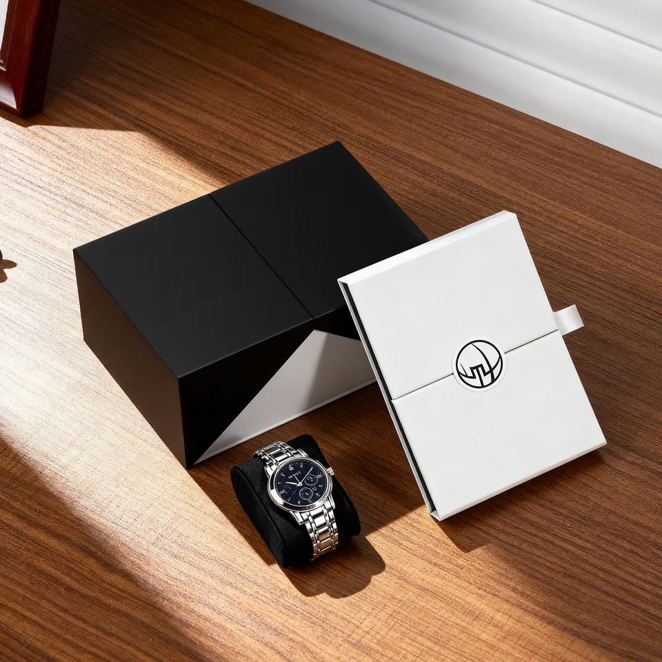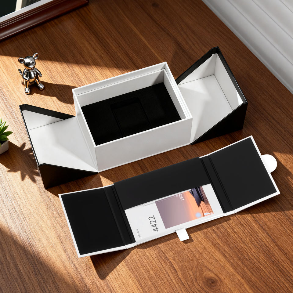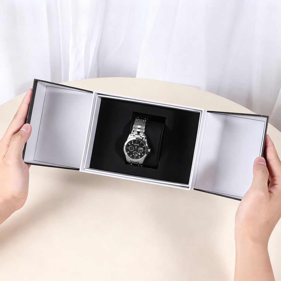 Scatola da collezione di orologi di lusso di nuovo Design nero lucido pianoforte laccato a doppia porta scatole di carta per orologio