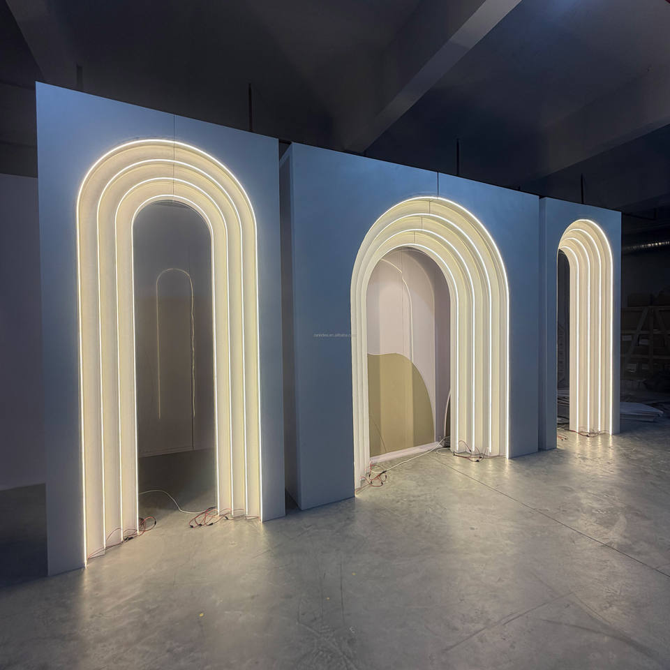 Nuovo Design Moderno e Lussuoso Set di Supporti per Fondale Nuziale Gigante in PVC 3D con Arco Curvo per Decorazione Palcoscenico