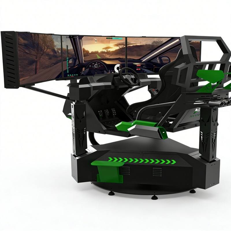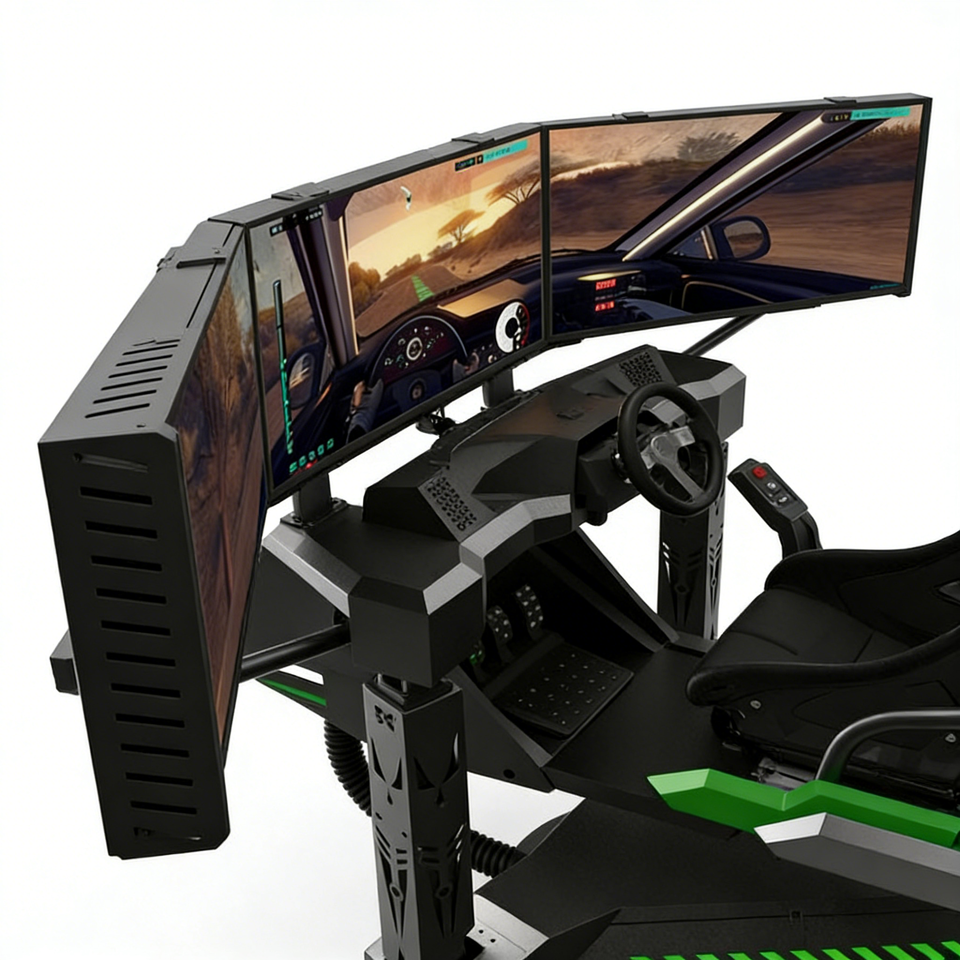 Nuovo Design Moderno di Simulatore di Guida con Cockpit Elegante e Ritagli Geometrici per un Look Industriale e Sportivo