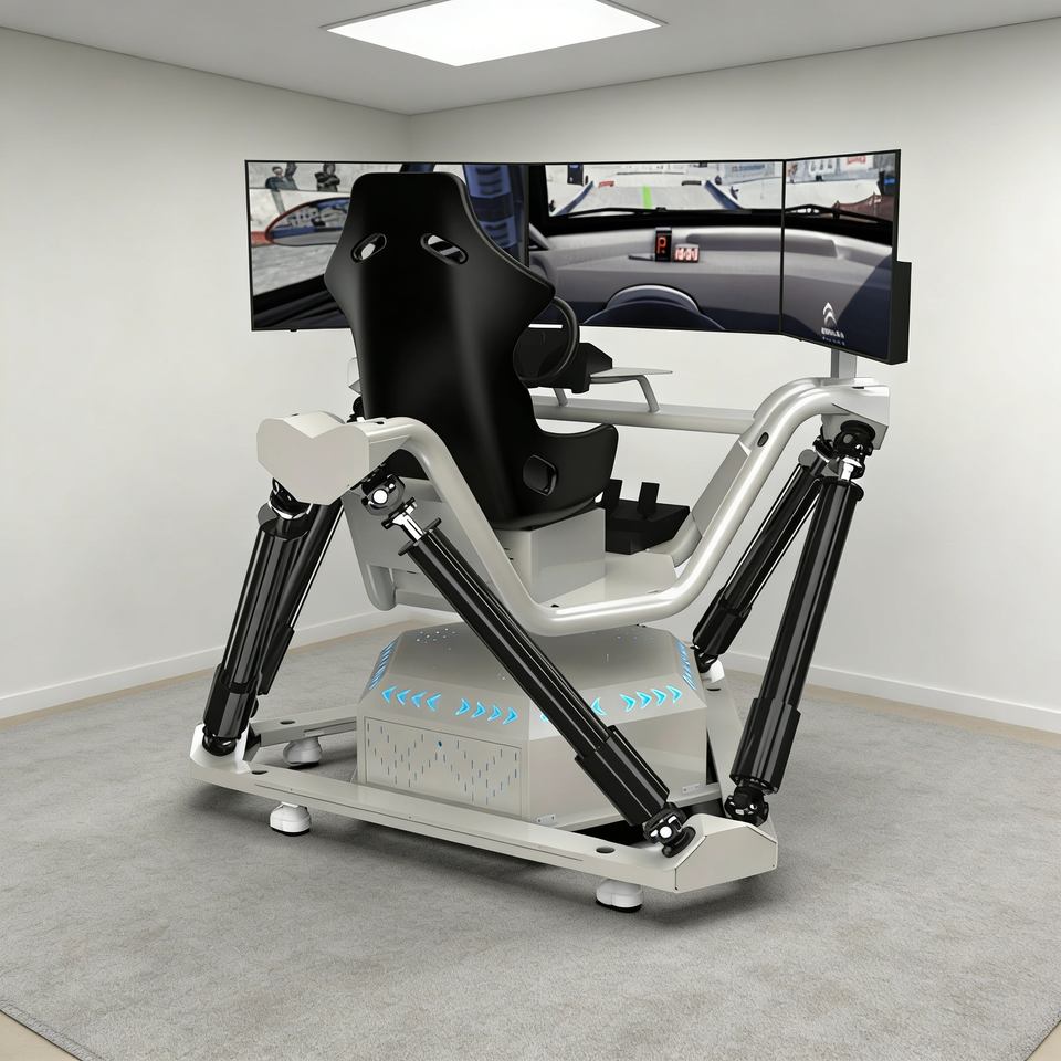 Nuovo Design Moderno di Simulatore di Guida con Cockpit Elegante e Sistema Idraulico, con Ritagli Geometrici per un Look Industriale e Sportivo