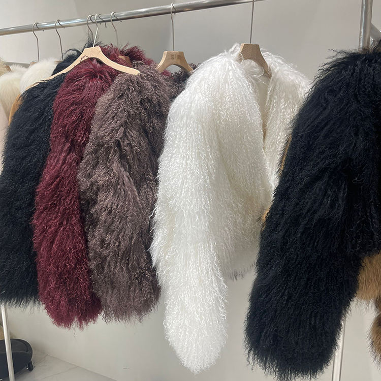 New Design Mongolian Long Hair Sheep Fur Trench Coat Women Wool Coat