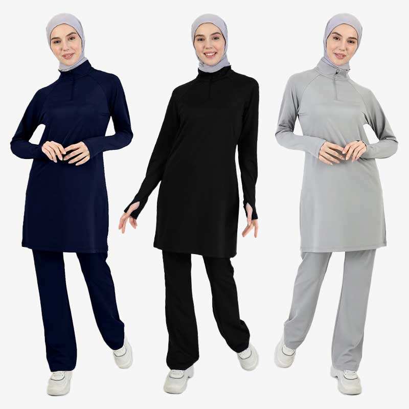 Dettagli della confezione:Nuovo Design musulmano 2 pezzi Hijab Top lungo e pantaloni abbigliamento sportivo arabo islamico modesto abbigliamento sportivo per donne musulmane