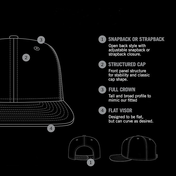 Logo position:Left panel, back curved part, front panel, brim/visor