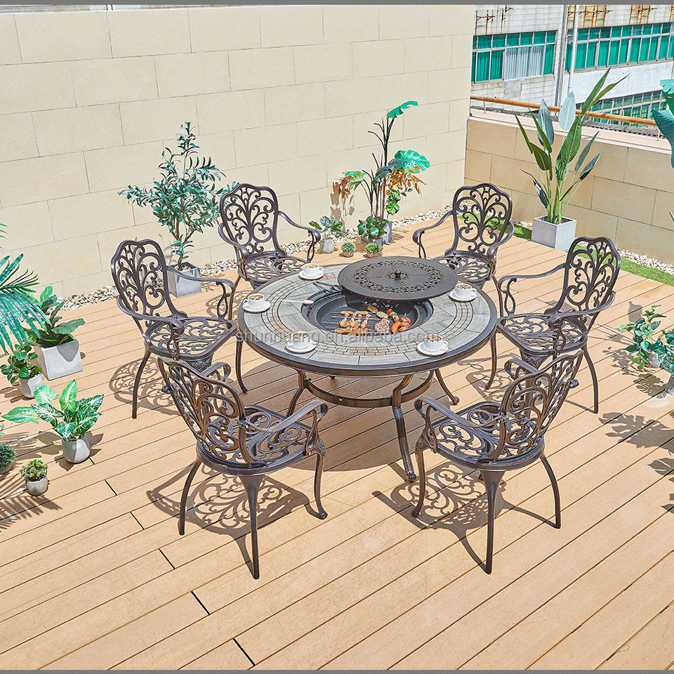 Nuovo Design Set da Giardino con Sedia con Braccioli e Tavolo Rotondo in Alluminio Pressofuso per Esterni e Barbecue