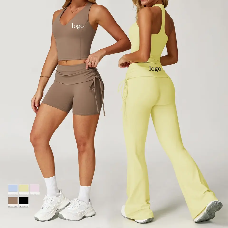 Nuovo Design Plus Size allenamento palestra Fitness corsetto sport Crop Top gamba larga Flare Leggings 2 pezzi abbinati Yoga Set donna