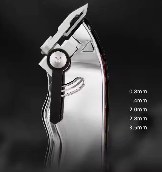 Lama in acciaio titanio: La lama in acciaio titanio garantisce un bordo di taglio affilato e duraturo, adatto a vari tipi e stili di capelli.