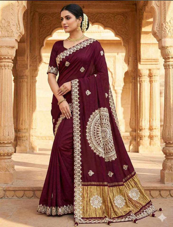 New Design Pure Modal Silk Saree with Lagidis Patter work gotten pate with tissue pallu Designer