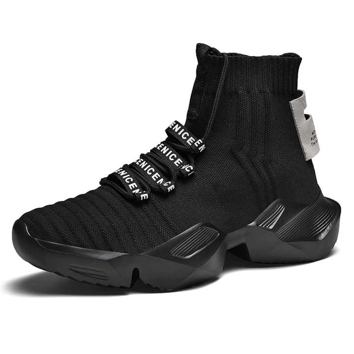 Nuove Sneakers da Uomo con Punta Arrotondata, Logo Personalizzato, Tessuto Traspirante Lavorato a Maglia, Modello Alto alla Caviglia