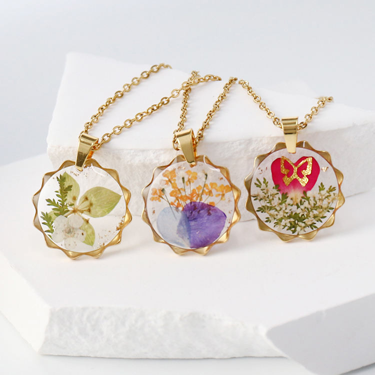 Nuovo Design Collana con Fiore Essiccato a Forma di Sole Fiore Vero Fiore Eterno Ciondolo Retrò Regalo per la Festa della Mamma