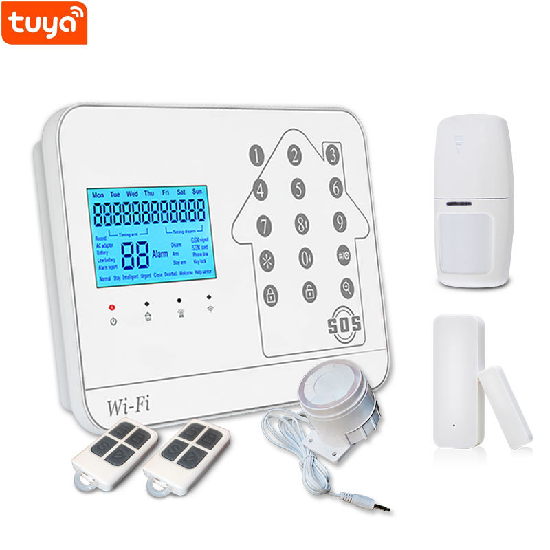 Ogni insieme ha imballato in una scatola regalo con un sensore pir, un contatto magnetico, una sirena, a distanza di due di controllo, un adattatore e un manuale Inglese
