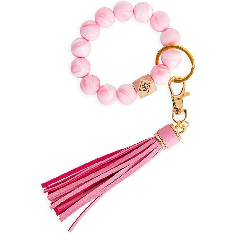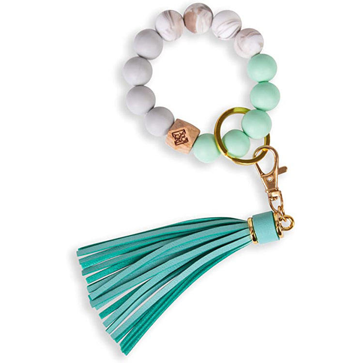 New Design Women Silicone Beaded Bangle Key Ring Wristlet Colorful Tassel Bracelet Keychain
