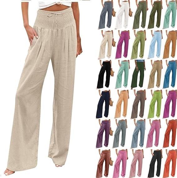 Descrizione:Pantaloni da donna in lino 100% a vita alta