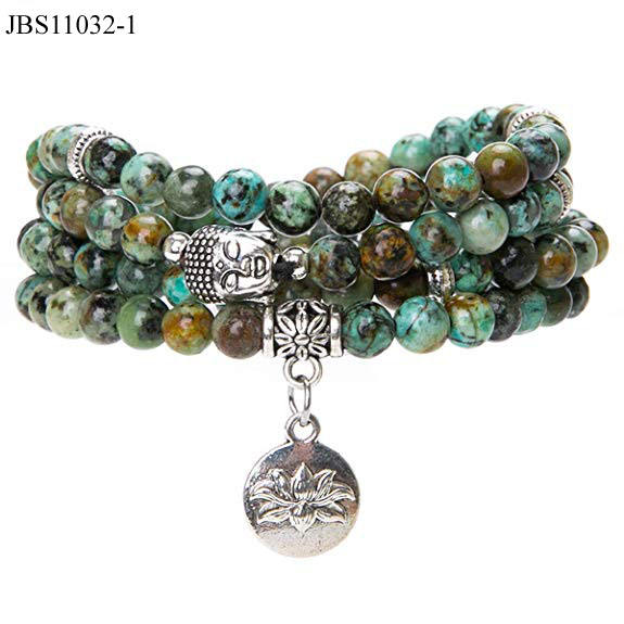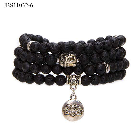 Nuovo Design108 Mala Yoga collana e bracciale in pietra lavica buddista Lotus Charm braccialetto di perle di preghiera a più strati in vera pietra preziosa