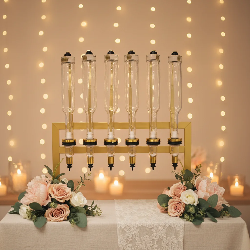 Nuovo Espositore da Tavolo Dorato per Oli Essenziali e Profumi, Dispenser per 6 Bottiglie da 375ml per Decorazioni Matrimoniali