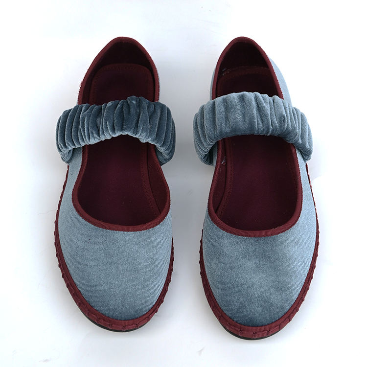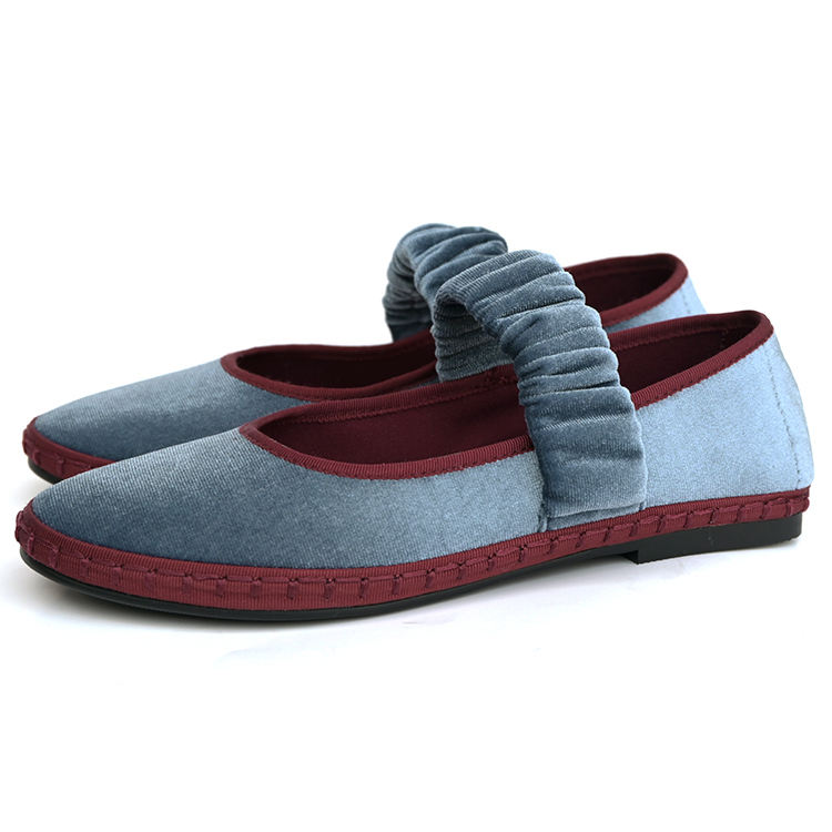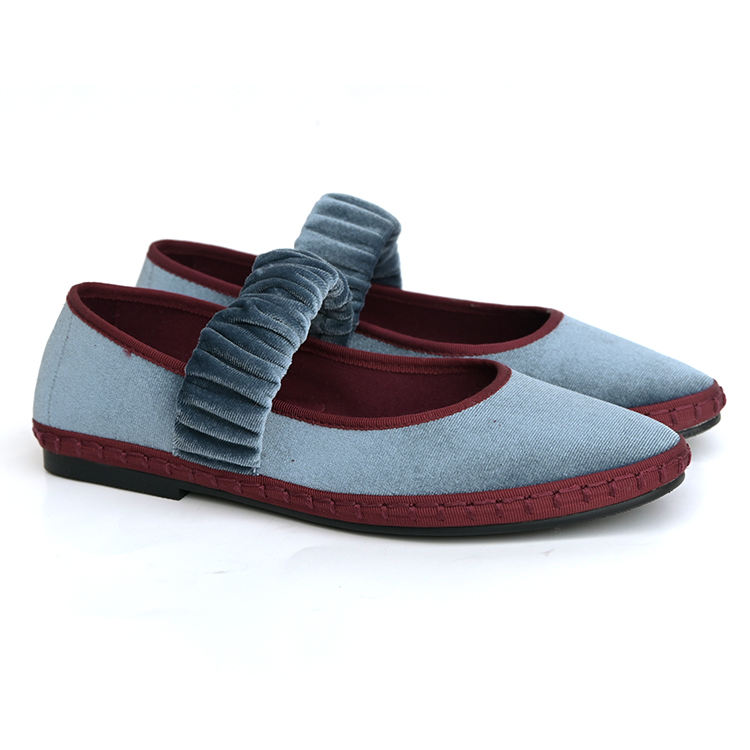 New Designs Elastic Wrinkled Strap Women Flat Shoes Comfortable Velvet Flat Mary Jane Ballerina Shoes